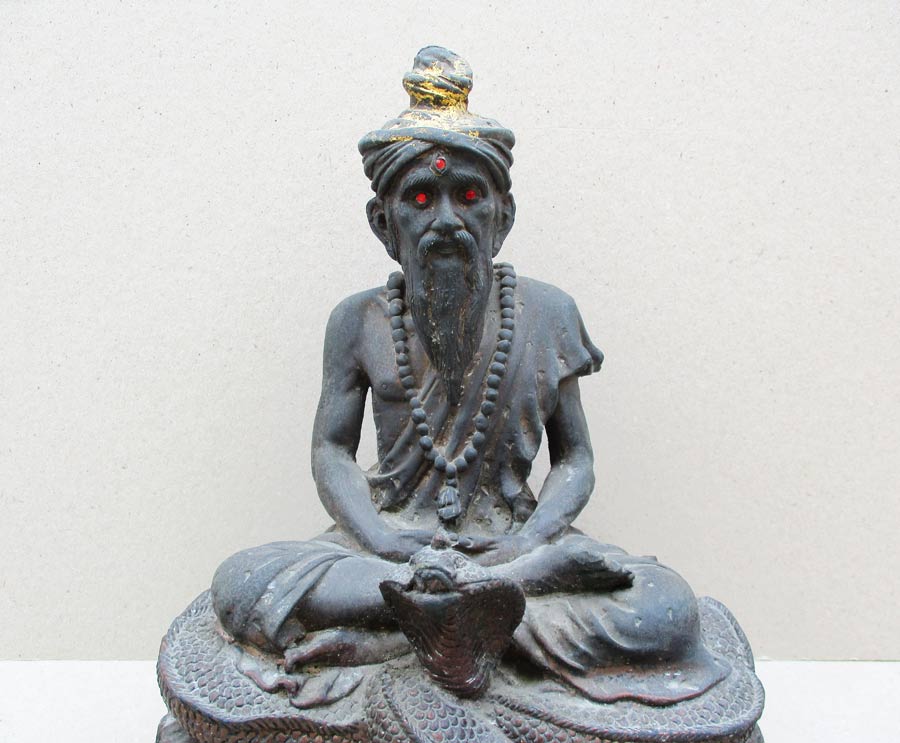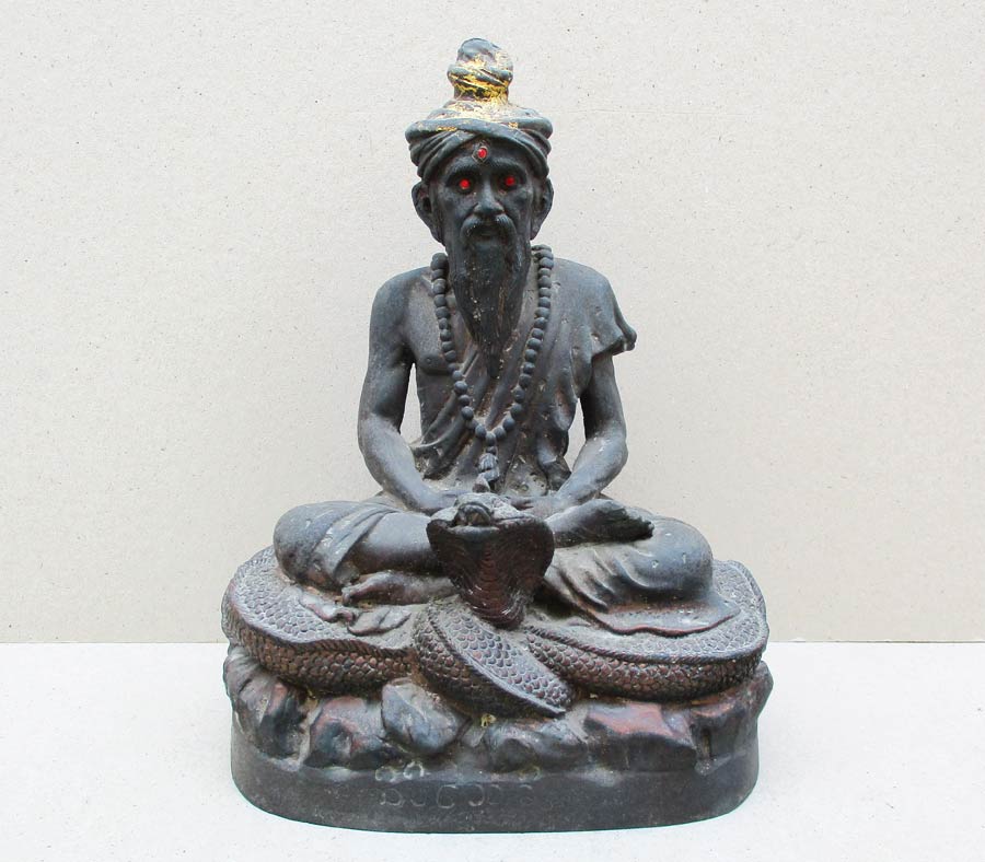 อริยะบท....นั่งบริกรรมบนฐานภูเขาหิน มีพญางูจงอางขดตัวรองรับ !!