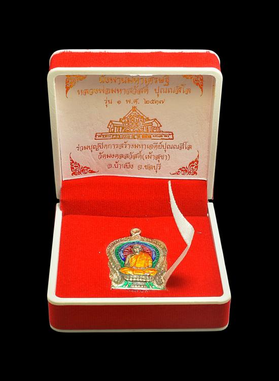 เหรียญพิมพ์นั่งพาน รุ่น 1 หลวงพ่อสวัสดิ์ ปุณณสีโล เนื้อเงินลงยาสีแดง หมายเลข 22 วัดใจเคาะแรก!!!