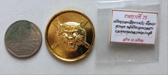 วัดใจเคาะเดียวแดงจ้า เหรียญเสือคาบแก้ว เนื้อนวะชุบทอง หลังเรียบอุดมวลสารรวมพุทธคุณ หลวงพ่อประสูติ วัดในเตา หมายเลข22 เคาะเดียวแดงจ้า