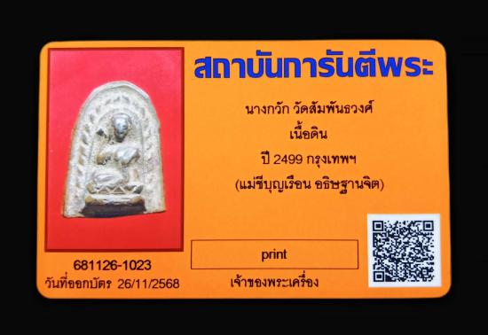 นางกวัก แม่ชีบุญเรือน ปี 2499 เนื้อดิน วัดสัมพันธวงศ์ กทม พร้อมบัตรรับรอง ครับ