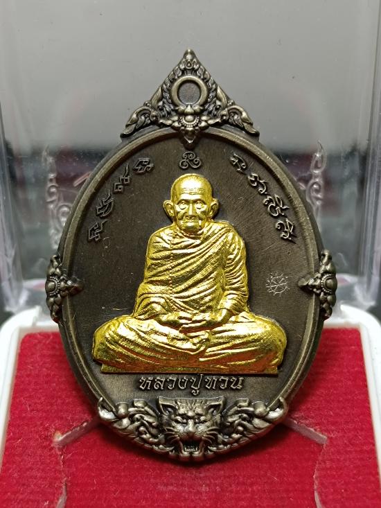 เหรียญ รุ่น เพชรบูรพา ปี2561 หลวงปู่ทวน วัดโป่งยาง จ.จันทบุรี เนื้ออัลปาก้ารมซาติน หน้ากากทองระฆัง หมายเลข 191