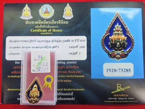 เหรียญเข็มกลัดพระพรหม หลวงพ่อพูล วัดไผ่ล้อม เนื้อกะไหล่ทองลงยา ปี2545 ติดรางวัลที่2 งานสมาคมพระเครื่องพระบูชาไทย