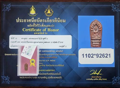 ปรกใบมะขาม องค์พ่อจตุคามรามเทพ วัดพระมหาธาตุฯ รุ่นชนะมาร เนื้อทองแดง ปี2547 ติดรางวัลที่2