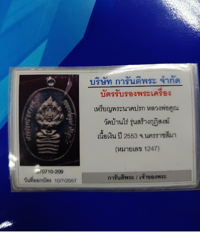 ** วัดใจ 200.- เหรียญนาคปรก ลพ.คูณ สร้างกุฎิสงฆ์ เนื้อเงิน ปี 2553 ครับ **