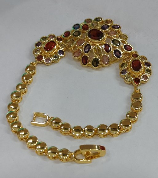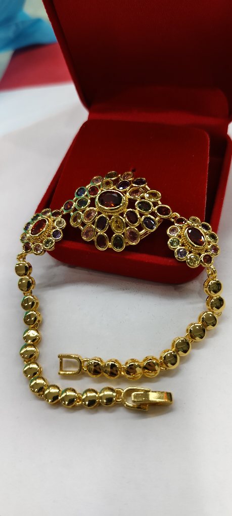 เทขาดทุน+ กำไลข้อมือนพเก้ายาว 7.5นิ้ว งานจิวเวลลี่ชุบทองแท้