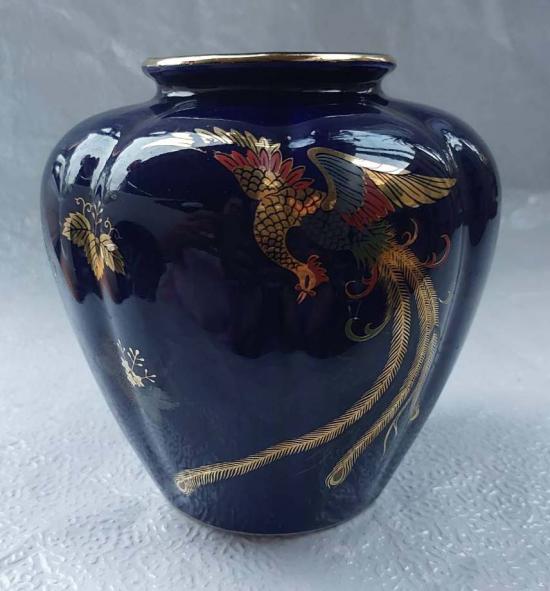 ***วัดใจ***แจกันเซรามิกญี่ปุ่น ทรงฟักทอง ของสะสม ปากกว้าง 3.5 นิ้ว สูง 6.5 นิ้ว ลายรูปนกฟีนิกซ์ เส้นทอง