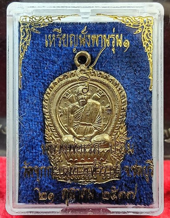 เหรียญนั่งพาน หลวงพ่อเริ่ม ปรโม (หลวงปู่เริ่ม) วัดจุกกะเฌอ จ.ชลบุรี เนื้อฝาบาตร ปี2537 พระสวยผิวเดิมสภาพตามรูปเลยครับ มีกล่อง