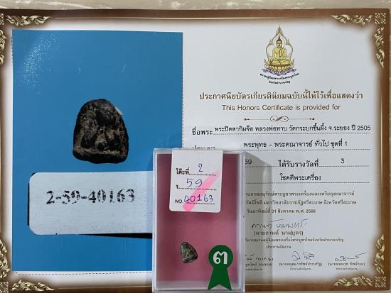 ด้านหลีงติดสีผึ้งเขียว หลวงปู่ทิมร่วมปลุกเสก สร้างปี 2505 สวยสมบูรณ์ผิวเดิมๆ ไม่หักไม่ซ่อม รับประกันพระแท้ ดูง่าย พร้อมใบประกาศรางวัลที่3 งานสมาคม