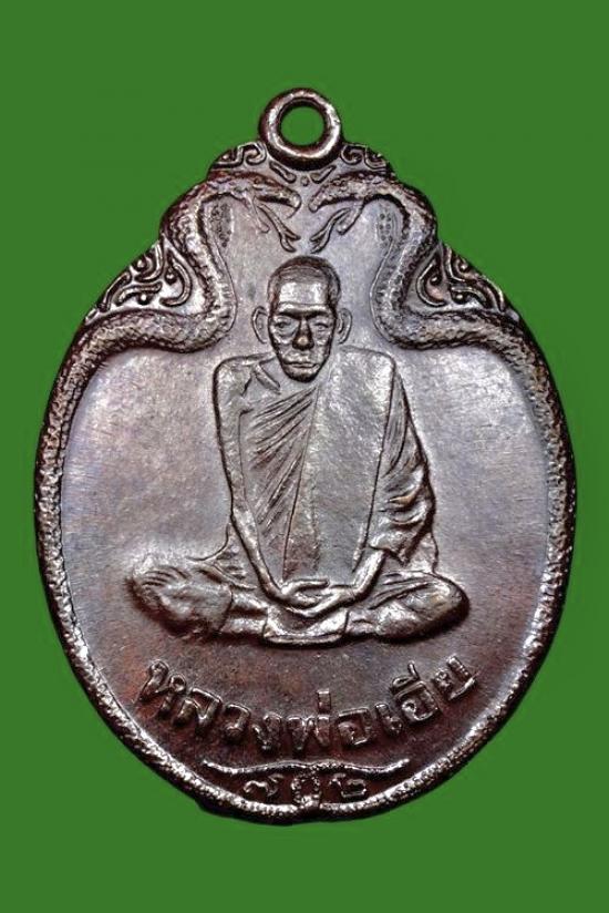 เหรียญงูเล็ก รุ่น 32 ( รุ่นสุดท้าย ) หลวงพ่อเอีย วัดบ้านด่าน ( นิยมหลัง 2 ขีด ) เนื้อทองแดง ปี 2521 สวยครับ
