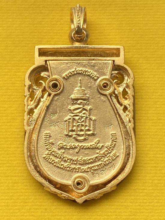 เคาะเดียวแดง พระสังฆราช รุ่น ทรงประทานพร เลข397 เนื้อ ชุบทองลงยาแดง |