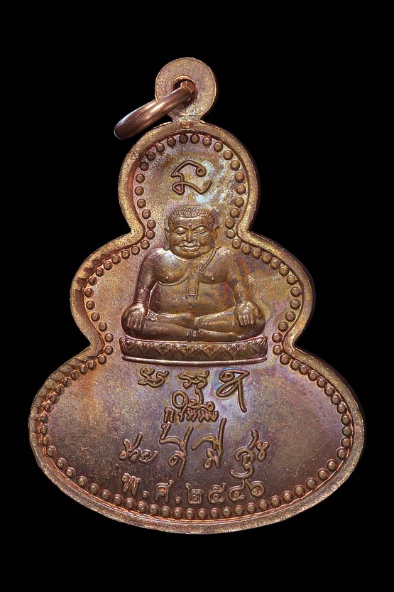 เหรียญน้ำเต้า รวย ดี มี สุข รุ่น หัวนอน ( เนื้อทองแดง ) พ.ศ.2546 ( กล่องเดิม ) ** 1 **