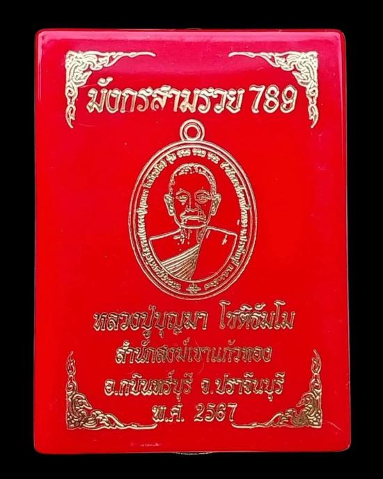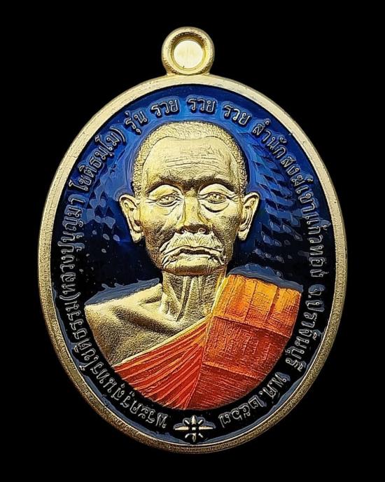 เหรียญมังกรสามรวย789 เนื้อกะไหล่ทอง ไล้สีดำ น้ำเงิน จีวรส้ม(นำฤกษ์) หลวงปู่บุญมา สำนักสงฆ์เขาแก้วทอง จ.ปราจีนบุรี