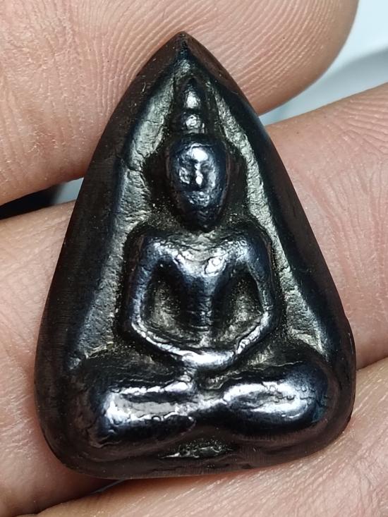 พระพุทธนั่งปางสมาธิ หลังยันต์ เนื้อเมฆพัตร มีกระเทาะบ้างด้านหลัง ดูจากเนื้อพระแล้วน่าจะเป็นการสร้างย้อนยุคหลวงปู่บุญ วัดกลางบางแก้ว หรืออาจจะเป็นเกจิคณาจารย์ยุคหลังสร้าง ไม่ทราบที่ พิจารณาให้ชอบก่อนเค |