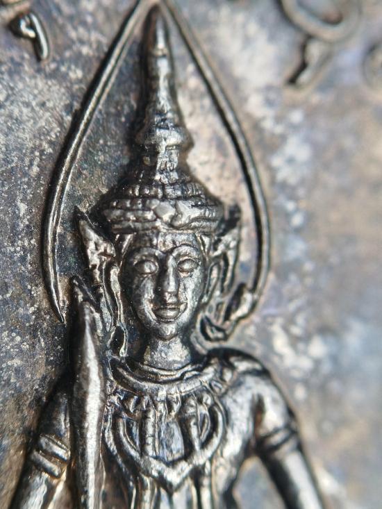 เหรียญพระสยามเทวาธิราช วัดป่ามะไฟ จ.ปราจีนบุรี ปี 2518 พิมพ์ใหญ่ เนื้อกะไหล่เงิน บล็อคนิยม |