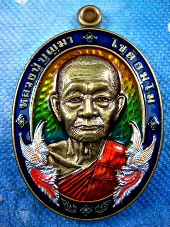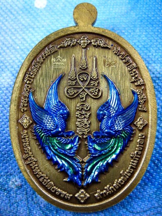 เหรียญรุ่นรวย 100 ปี โชคดี 100 ชาติ หลวงปู่บุญมา โชติธมโม สำนักสงฆ์เขาแก้วทอง เนื้อทองทิพย์ซาติน ลงยาฟ้า หลังเพ้นนกสาริกา (---A51---)