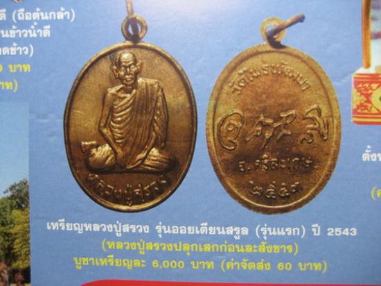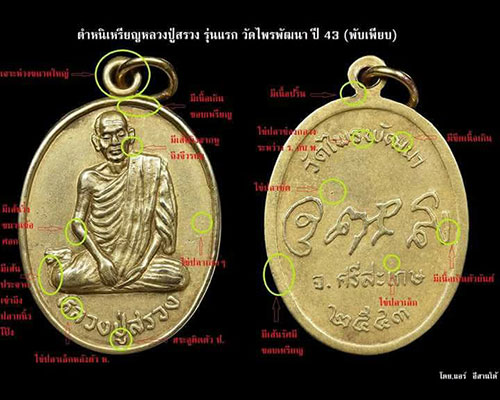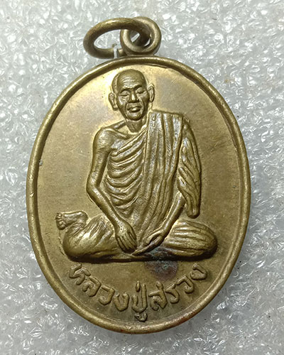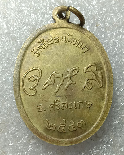 เหรียญหลวงปู่สรวง วัดไพรพัฒนา อำเภอภูสิงห์ จังหวัดศรีสะเกษ ปี 2543 (พับเพียบ) เนื้อทองฝาบาตร
