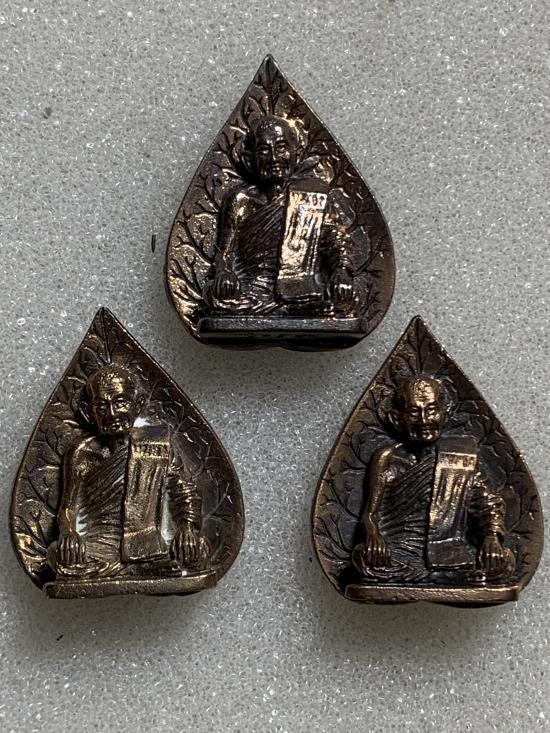 เหรียญหล่อใบโพธิ์ รุ่น1 หลวงปู่คร่ำ วัดวังหว้า จ ระยอง เนื้อนวะ ปี 2536 พร้อมกล่องสวยมาก เคาะเดียวครับ 3 องค์ |