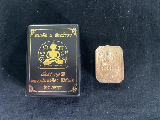 สมเด็จ 6 พิมพ์รวย เนื้อดินเผา พิมพ์ทรงเม่น หมายเลข 622 ด้านบนอุดมวลสาร หลวงปู่ศิลา สิริจันโท พร้อมกล่อง |