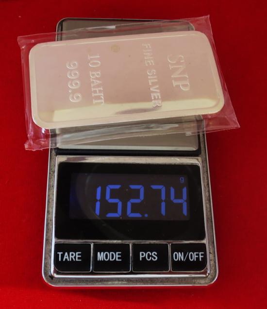 เงินแท่งขนาด 10 บาท หรือ FINE SILVER 999.9% น้ำหนัก 10 บาท ใหม่ๆเลยครับ ในซีลเดิมๆ |