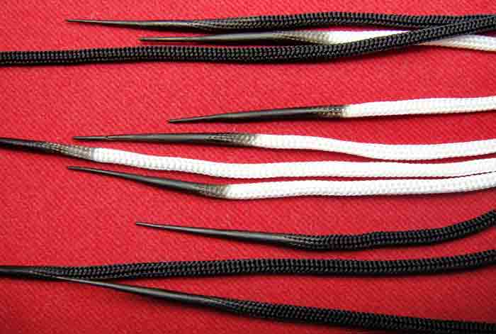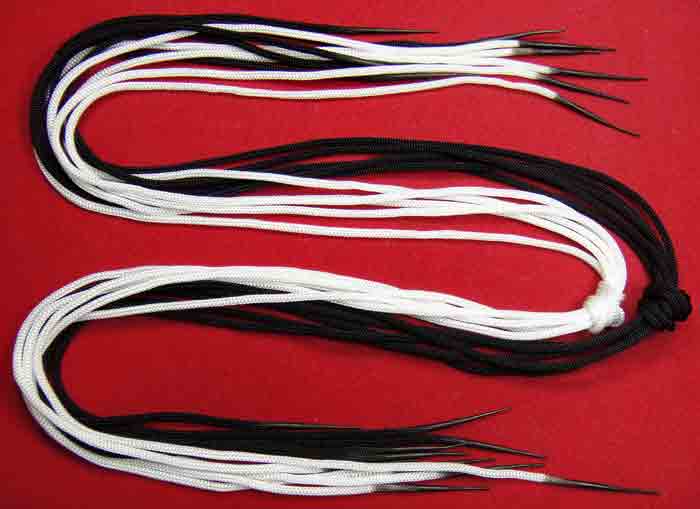 เชือกร่มปลายแหลม ลายถักเหนียวแน่น รับน้ำหนักได้ดี สำหรับนำไปร้อยสร้อยตามแบบที่คุณต้องการ ขนาดความยาว 30 นิ้ว เส้นผ่าศูนย์กลาง ร้อยสร้อยได้ขนาด 1-2 ม.ม. (จำนวน 10 เส้น)