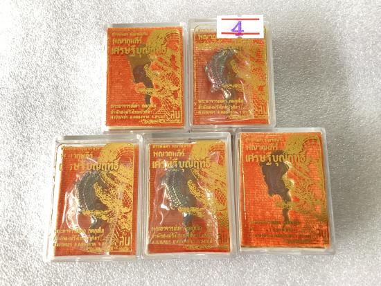 พญากุมภีร์ เศรษฐีบุญฤทธิ์ พระอาจารย์เต๋า สำนักสงฆ์วังไหมบัวศิลา จ.สระแก้ว เนื้อชนวนทองแดงมหาเตโช กล่องเดิม ( 5กล่อง ) |
