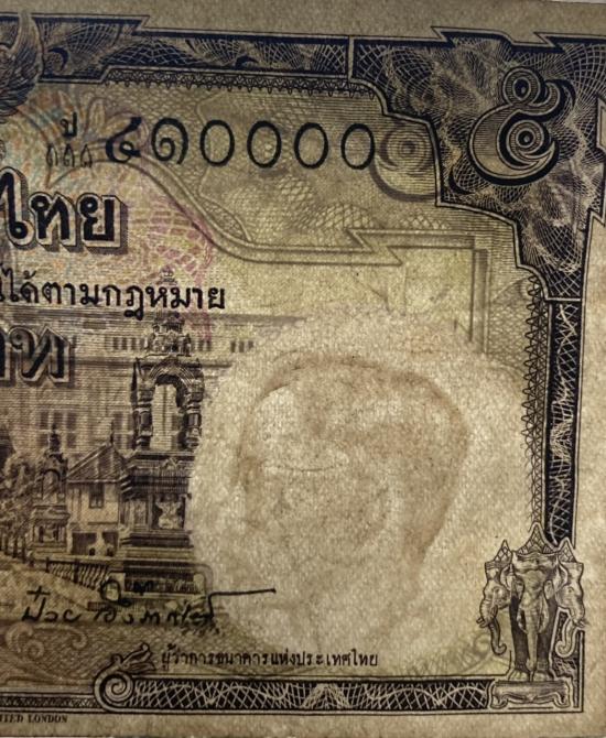 ด้านหนัาธนบัตรรุ่น 5 เปลี่ยนภาพลายน้ำจากรูปพานรัฐธรรมนูญเป็นภาพพระบรมสาทิสลักษณ์รัชกาลที่ 9 และด้านหลังมีการเปลี่ยนข้อความแจ้งโทษ ข้อความการแจ้งโทษของการปลอมแปลงธนบัตรมีการเปลี่ยนแปลงไปจากเดิม โดยโทษเดิมเขียนว่า "โทษฐานปลอมหรือแปลงธนบัตรคือจำคุกตั้งแต่สิบปีถึงตลอดชีวิตและปรับตั้งแต่พันบาทถึงหมื่นบาทหรือหรือสิบเท่าราคาธนบัตรปลอมแล้วแต่จำนวนไหนจะมากกว่ากัน" โทษใหม่ที่หนักกว่าเดิมเขียนว่า "โทษฐานปลอมหรือแปลงธนบัตร คือจำคุกตลอดชีวิต หรือจำคุกอย่างสูงยี่สิบปี และปรับอย่างสูงสี่หมื่นบาท" เป็นการเปลี่ยนแปลงไปตามประมวลกฎหมายอาญาที่เริ่มบังคับใช้เมื่อวันที่ 1 ม.ค. 2500