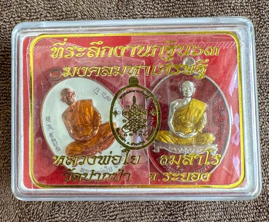เคาะเดียวแดง ชุดกรรมการเหรียญมงคลมหาเศรษฐีหลวงพ่อใย วัดปากป่า จ.ระยอง ปี 2563 เนื้ออัลปาก้าลงยาแดง จีวรเหลือง + เนื้อทองแดงลงยาขาว ตอกเลข 267 มาพร้อมกล่องเดิมครับ