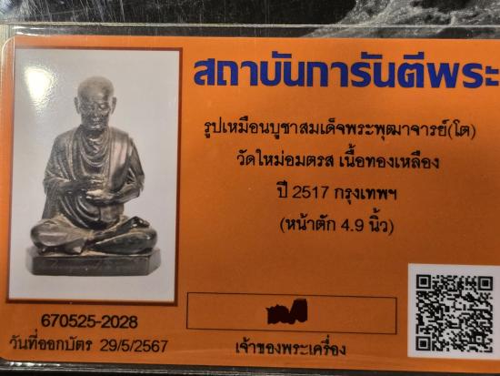 ชื่อพระเครื่อง พระบูชา สมเด็จโต ปี2517 หน้าตัก5นิ้ว พร้อมบัตรรับรอง