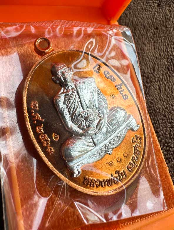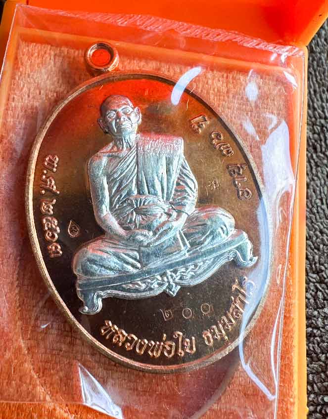 เคาะเดียวแดง เหรียญมงคลมหาเศรษฐีพ่อใย ทองแดงหน้ากากเงิน เลข 200 ครับ |