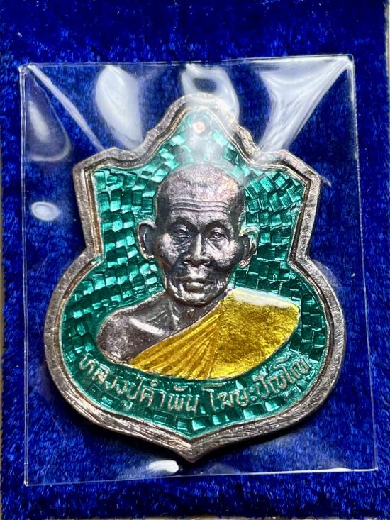 เหรียญอาร์ม หลวงปู่คำพันธ์ เนื้อเงินลงยาเขียว กล่องเดิม