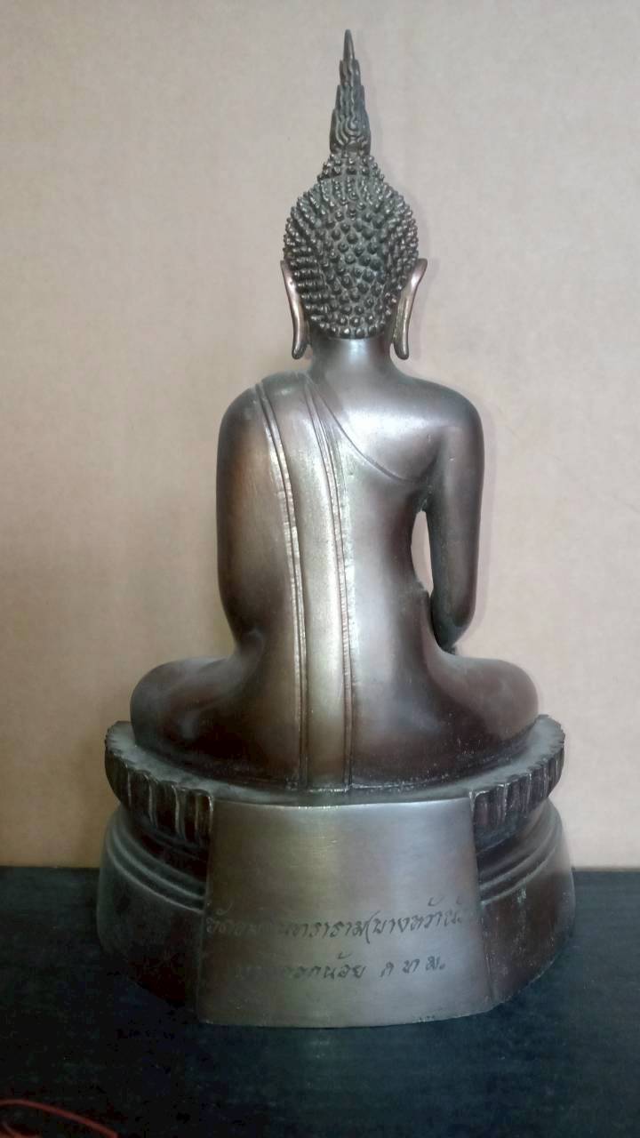 จัดสร้างปีพ.ศ.2537 หน้าตัก 5 นิ้ว เนื้อโลหะรมดำมันปู ผิวหิ้ง สวยตม