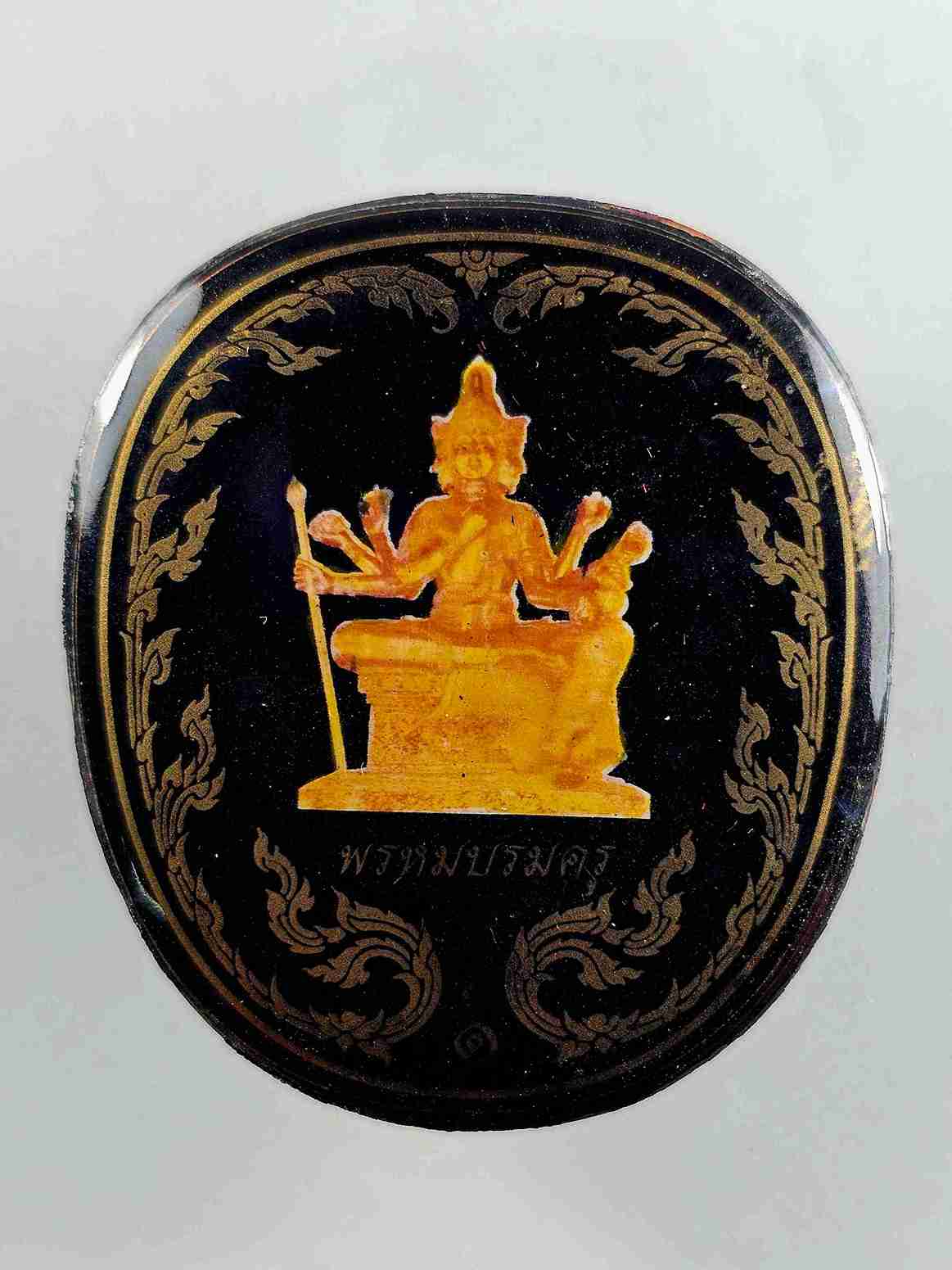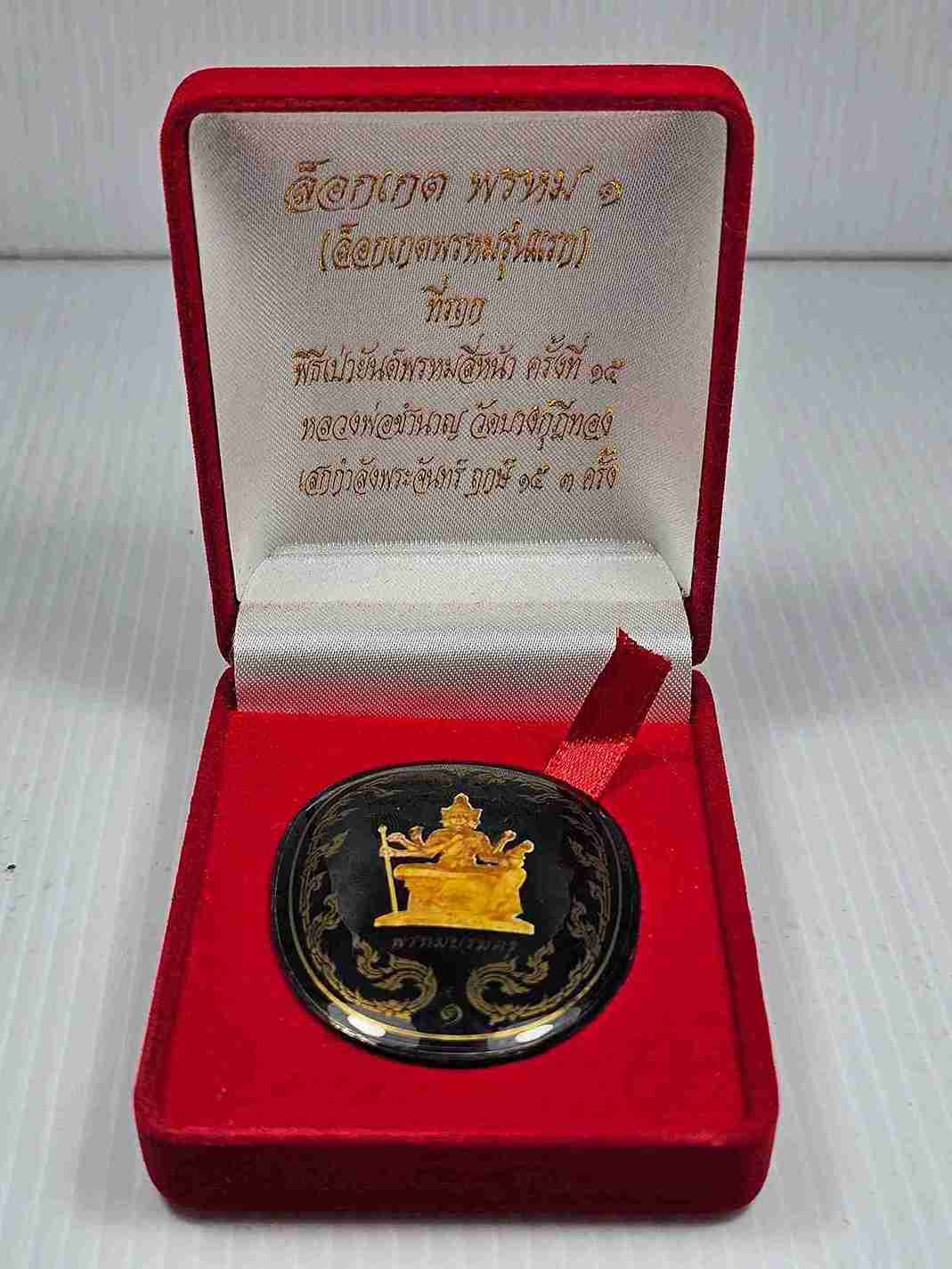 ล็อกเกตจัมโบ้ พระพรหม รุ่นแรก ฉากดำ-ลายน้ำทอง ตะกรุดทองคำ 9 ดอก หลวงพ่อชำนาญ วัดบางกุฎีทอง |