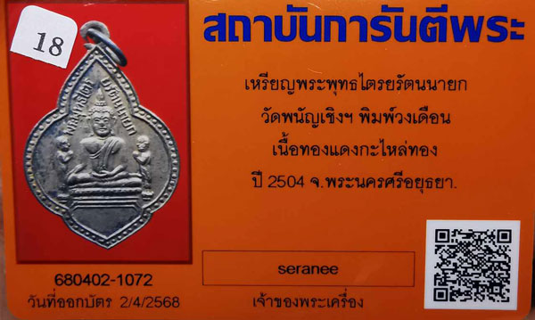เหรียญพระพุทธไตรยรัตนนายก วัดพนัญเชิงฯ พิมพ์หลังวงเดือน เนื้อทองแดงกะไหล่ทอง ห่วงเดิม ปี2504 จ.พระนครศรีอยุธยา + บัตรG-pra สภาพเดิมค่ะ |
