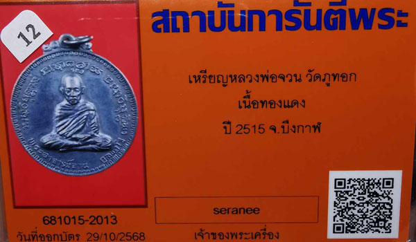 เหรียญหลวงพ่อจวน วัดภูทอก เนื้อทองแดง ห่วงเดิม ปี2515 จ.บึงกาฬ + บัตรG-pra สภาพสวยเดิมค่ะ สภาพตามรูปทุกประการค่ะ