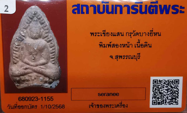 พระเชียงแสน กรุวัดบางยี่หน พิมพ์สองหน้า เนื้อดิน จ.สุพรรณบุรี + บัตรG-pra สภาพเดิมค่ะ สภาพตามรูปทุกประการค่ะ