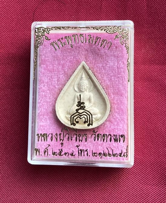พระผงพุทธเมตตา พิมพ์หยดน้ำหลังยันต์พุทซ้อน เนื้อผงพุทธคุณ หลวงปู่วิเวียร วัดดวงแข กทม. พร้อมกล่อง 1 องค์ครับ พระสวยพุทธคุณเมตตาล้นๆ ครับ