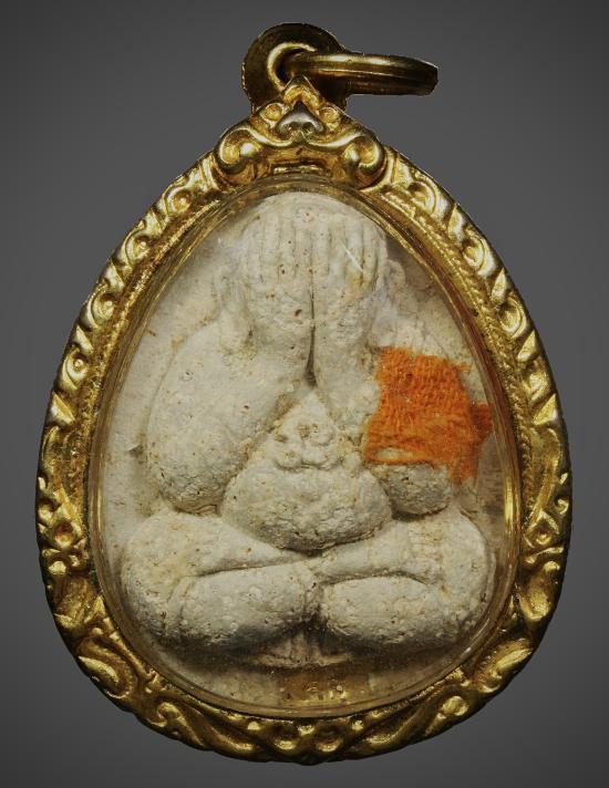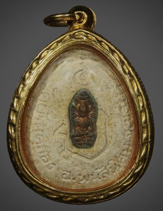 พระปิดตาสารพัดดี พิมพ์จัมโบ้ หลวงพ่อคูณ ปริสุทโธ ออกวัดบ้านคลอง ปี 2538 เนื้อผง ฝังตะกรุดทองเหลือง ติดจีวร สวยๆ เลี่ยมตลับทองไมครอน