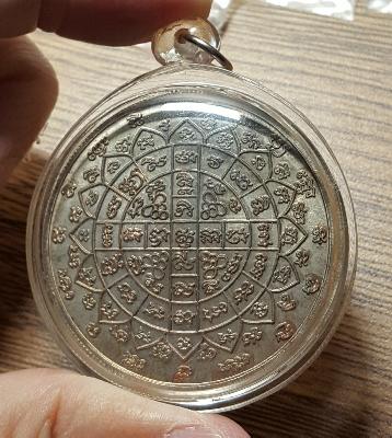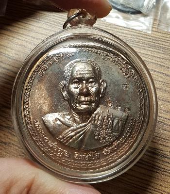 เหรียญบาตรน้ำมนต์รุ่นแรก เนื้อนวะพรายเงิน หลวงพ่อพูน วัดบ้านแพน อยุธยา เลี่ยมพลาสติกรักษาผิวไม่ผ่านการแขวนบูชา