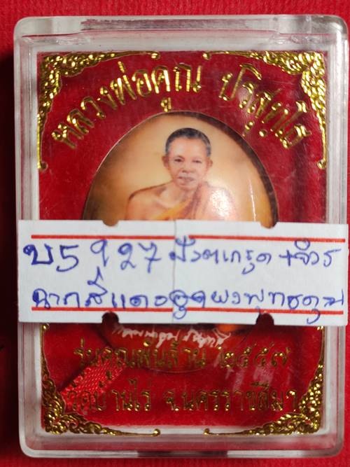 ล็อคเก็ตหลวงพ่อคูณ ปริสุทโธ รุ่น คูณพันล้าน ออกวัดบ้านไร่ ปี 57 ฉากสีแดงหลังอุดผงพุทธคุณฝังตะกรุด+ติดจีวร หมายเลข 927 สภาพสวย เคาะเดียวแดง