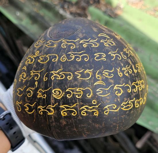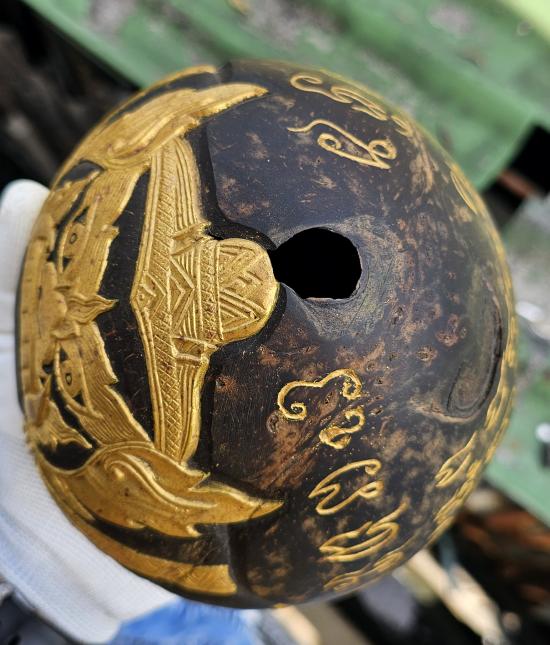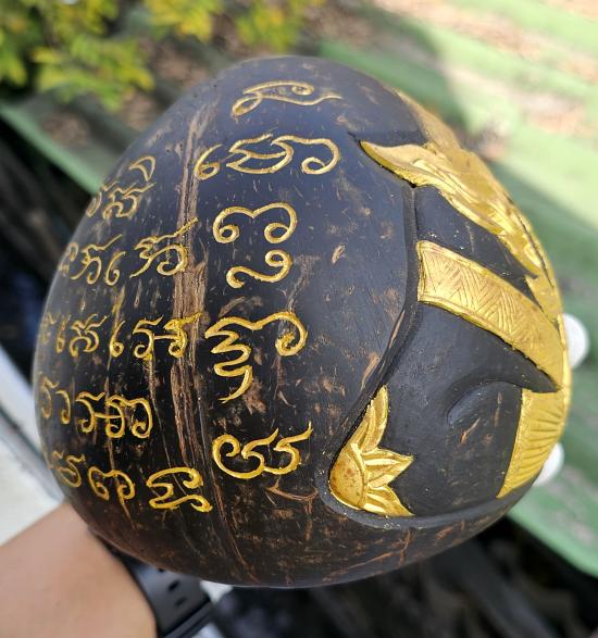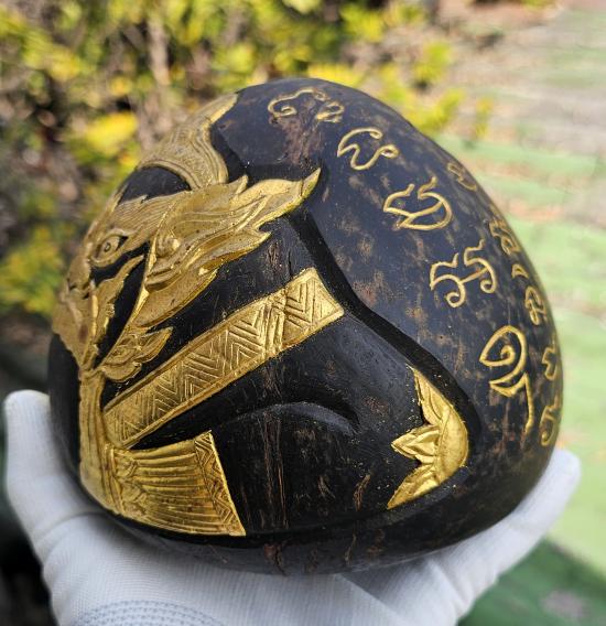 กะลาตาเดียวแกะทั้งใบ แกะราหู ปิดทอง ลูกใหญ่ (A)