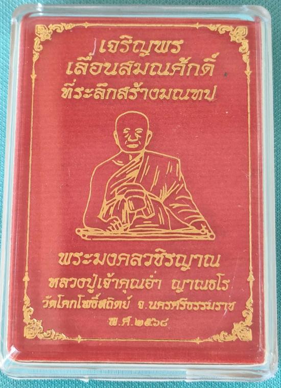 เหรียญ"เจริญพร"เลื่อนสมณศักดิ์ สร้างมณฑป พระมงคลวชิรญาณ(พ่อท่านอ่ำ ญาณธโร)อายุุ102ปี วัดโคกโพธิ์สถิตย์ นครศรีฯ เนื้อมหาชนวน หน้ากากเงิน ลงยาจีวร หลังพัดยศ หมายเลข ๔๑ พร้อมกล่อง พระสวยมากๆคับ |