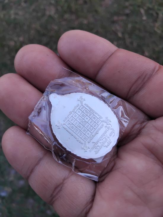 เหรียญหลวงปู่ทวดรุ่นนิมิตโชค เนื้อเงินลงยาสีฟ้า พระอาจารย์ติ๋ว วัดมณีชลขัณฑ์ จ.ลพบุรี ปี 2555