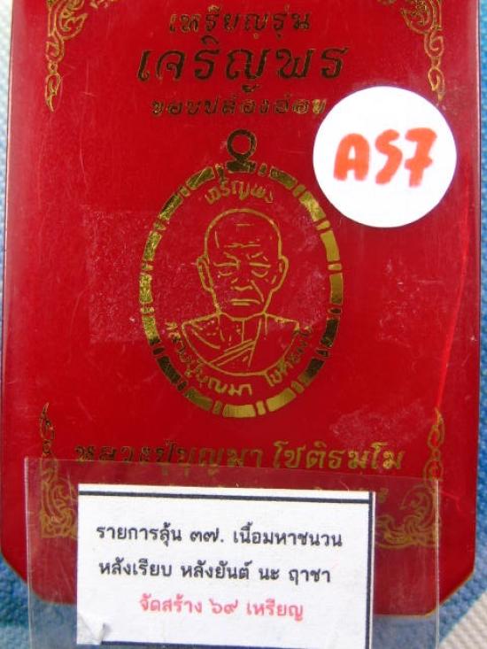 หรียญรุ่นเจริญพร ขอบปล้องอ้อย เนื้อมหาชนวนหลังเรียบ หลังยันต์ นะ ฤา ชา หลวงปู่บุญมา โชติธมโม สำนักสงฆ์เขาแก้วทอง (---A57---) |