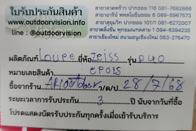 ใบรับประกัน 3 ปีจาก Outdoor Vision รับประกันแท้ครับ