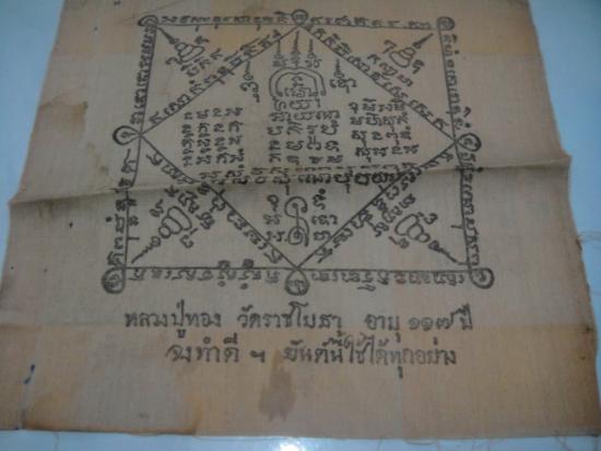 วัดใจเคาะเดียว........100......ผ้ายันต์หลวงปู่ทอง วัดราชโยธา อายุ 117ปี หลังนางกวัก ขนาด 8 X 8 นิ้ว |