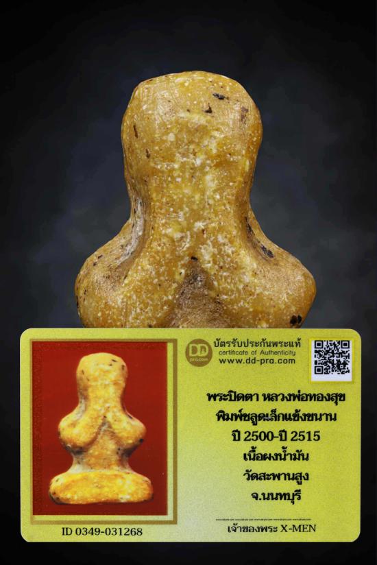 พระปิดตา พิมพ์ชลูดจิ๋วแข้งขนาน หลวงพ่อทองสุข ปี 2500-ปี 2515 เนื้อผงน้ำมัน วัดสะพานสูง จ.นนทบุรี หายากมากๆ + บัตรรับรอง