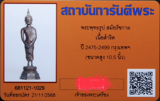 พระบูชา พระพุทธรูป สมัยรัชกาล พิมพ์ปางถวายเนตร (วันอาทิตย์) เนื้อสำริด แดง(นิยม) ยุคต้น ปี 2475 (สูง 10.5 นิ้ว) + บัตรรับรอง G-Pra