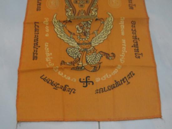 วัดใจเคาะเดียว........100.......ผ้ายันต์ครุฑแบกเสมา วัดหลวงพ่อโอภาสี อาศรมบางมด ขนาดประมาณ 11 x 18 นิ้ว สวย |