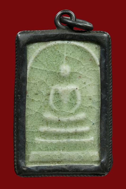 สมเด็จเคลือบ (เขียว) เลี่ยมจับขอบเงินเก่า ไม่ทราบที่ครับ |