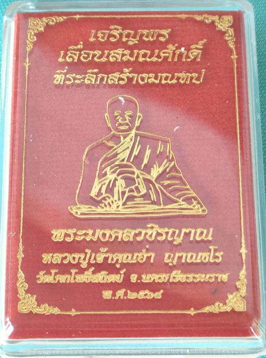 เหรียญ"เจริญพร"เลื่อนสมณศักดิ์ สร้างมณฑป พระมงคลวชิรญาณ(พ่อท่านอ่ำ ญาณธโร)อายุุ102ปี วัดโคกโพธิ์สถิตย์ นครศรีฯ เนื้อชุบ 3K คุ้ยพื้นลงยาแดง หลังพัดยศ หมายเลข ๕๖ พร้อมกล่อง เลขสวย เลขเรียง พระสวยมากๆคับ |